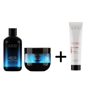 Set 6.Zero Take Over Define Curl, 6.Zero He.She, sampon + masca + crema pentru par cret si ondulat, 300 ml + 300 ml + 90 ml